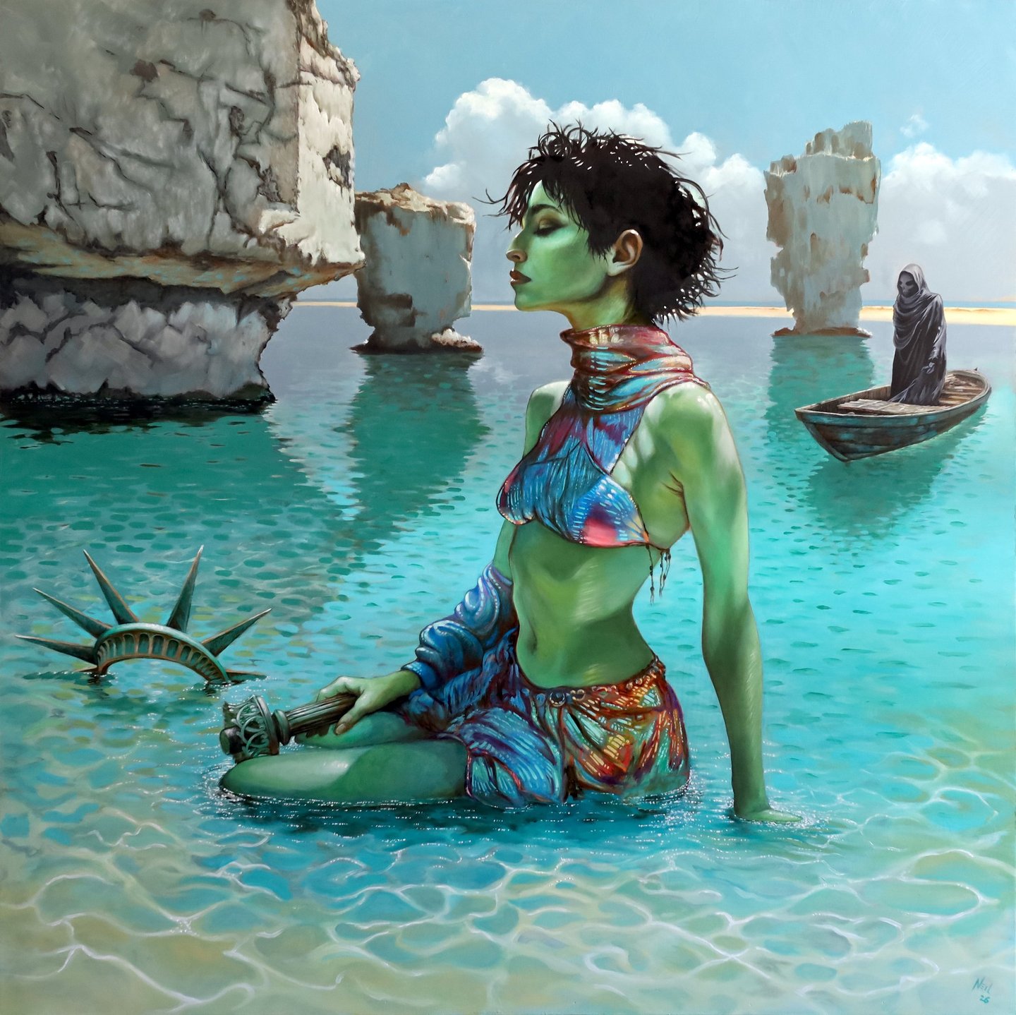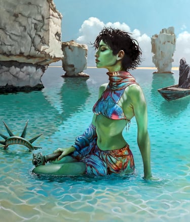 For three decades, Neil has been living and making art in Tucson, AZ. He currently uses oil paint to create both striking portraits and evocative narrative scenes. He is self-taught and his artistic journey has been anything but linear; with a rich and eclectic history that encompasses various forms, including sculpture, digital art and drawing. He has honed a unique style that blends traditional techniques with contemporary themes. With each brushstroke, he invites viewers into his world, where emotions and stories converge, revealing the depth and complexity of the human experience.