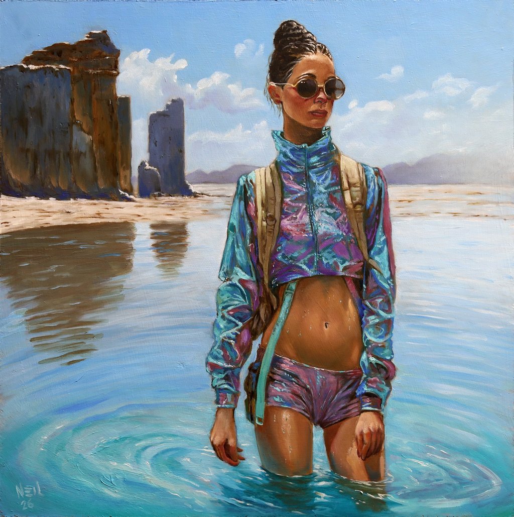 For three decades, Neil has been living and making art in Tucson, AZ. He currently uses oil paint to create both striking portraits and evocative narrative scenes. He is self-taught and his artistic journey has been anything but linear; with a rich and eclectic history that encompasses various forms, including sculpture, digital art and drawing. He has honed a unique style that blends traditional techniques with contemporary themes. With each brushstroke, he invites viewers into his world, where emotions and stories converge, revealing the depth and complexity of the human experience.