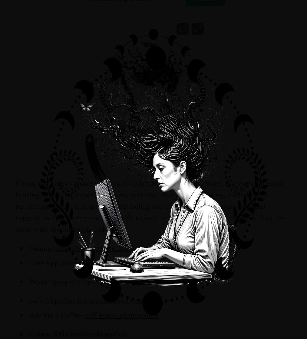 Alicia-Pilar Mogollon is a writer and artist in Tucson, AZ. She is an imaginative thinker and always stays one step ahead of the times.