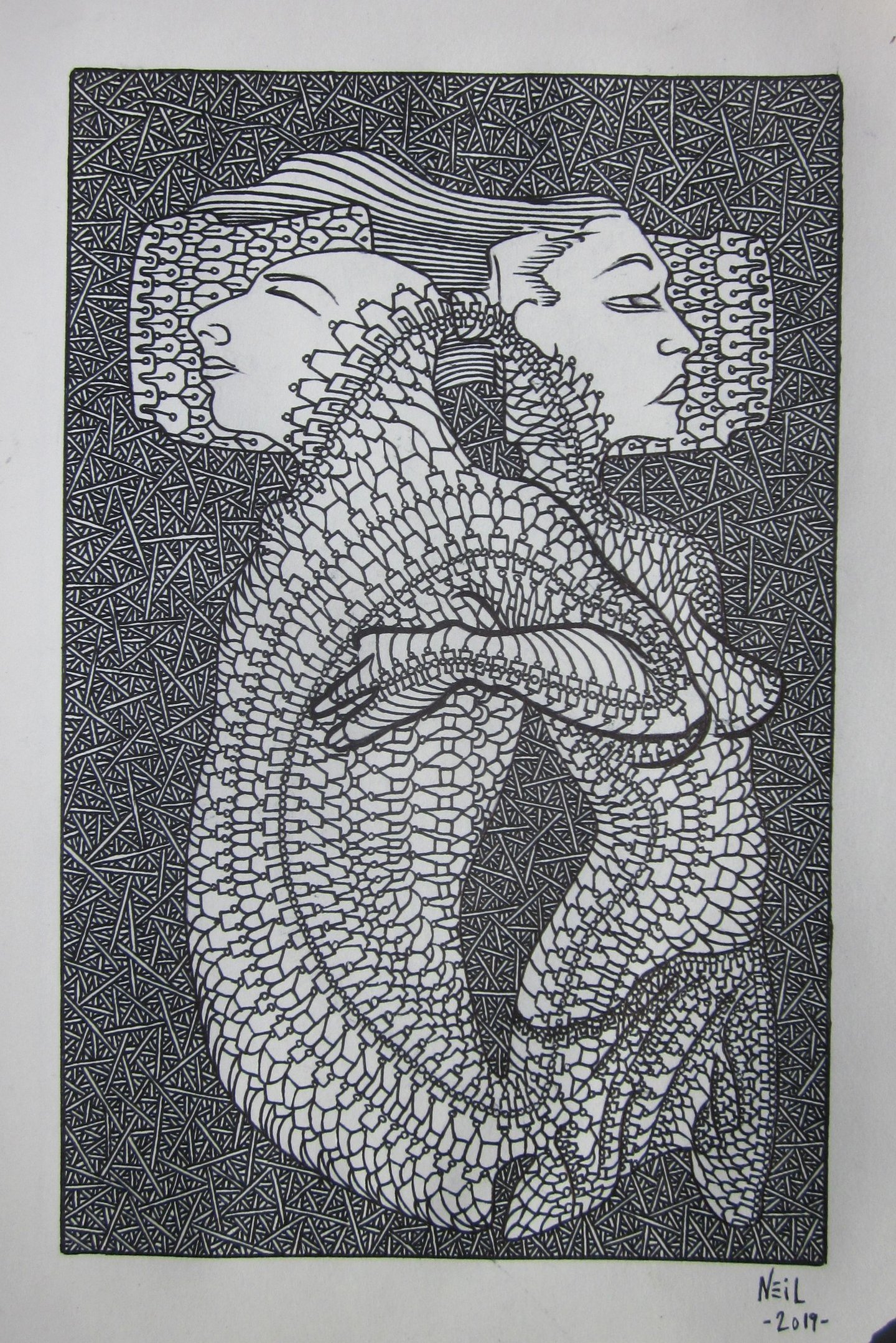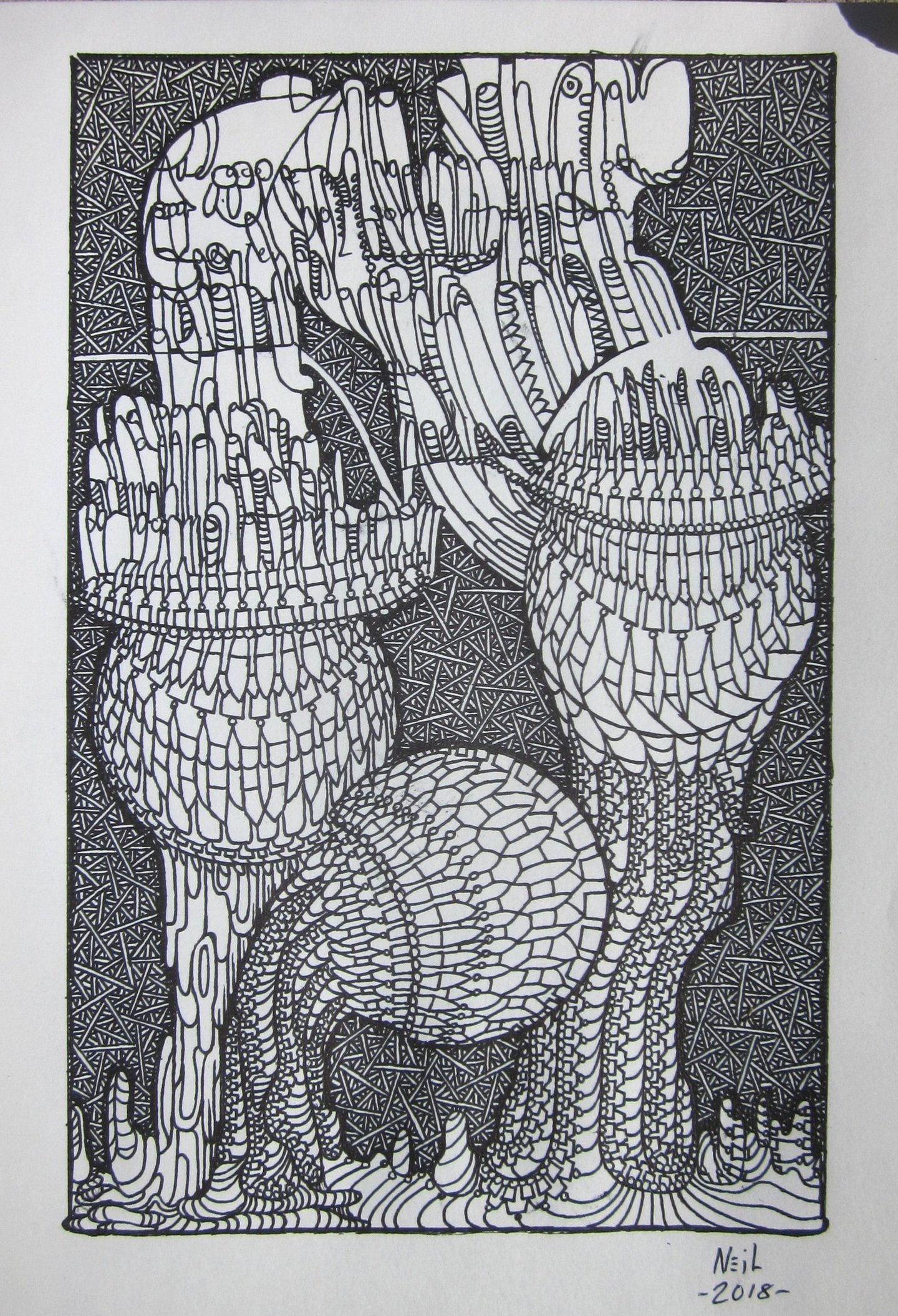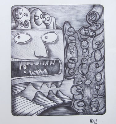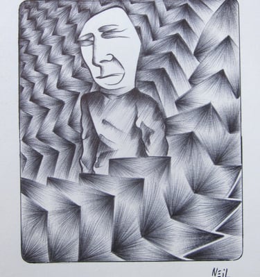 These are a few of my pen drawings on paper. I drew most of them while working at a call center during the pandemic, 2020-2023.