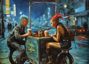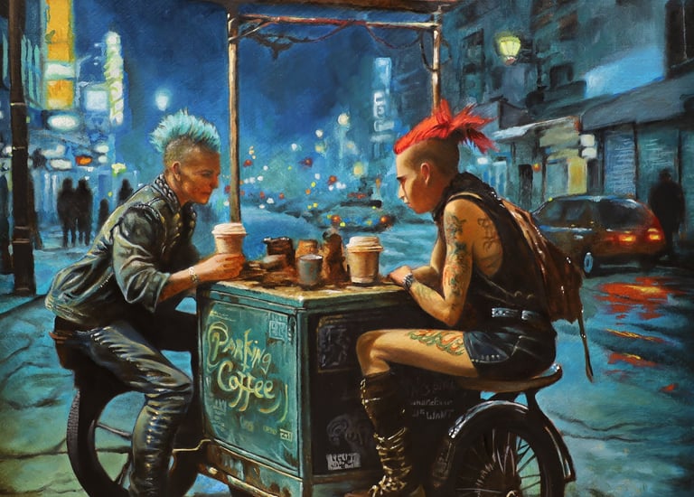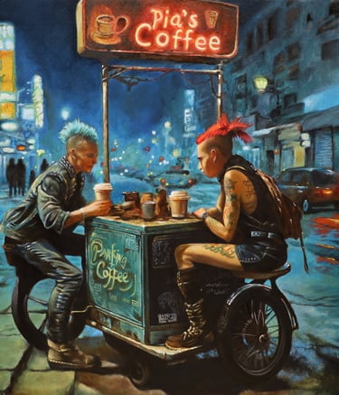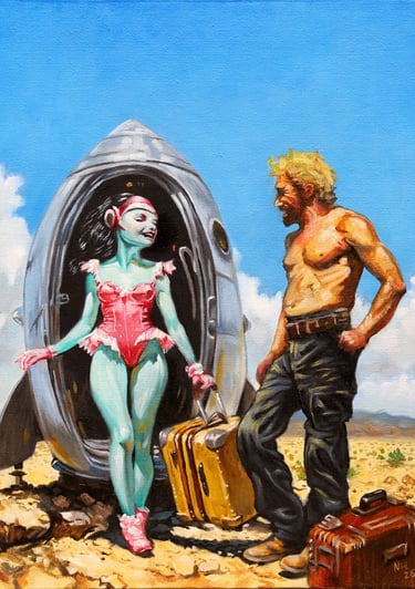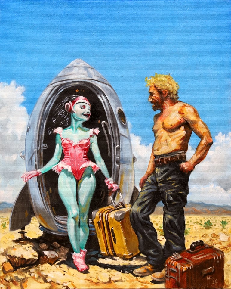 For three decades, Neil has been living and making art in Tucson, AZ. He currently uses oil paint to create both striking portraits and evocative narrative scenes. He is self-taught and his artistic journey has been anything but linear; with a rich and eclectic history that encompasses various forms, including sculpture, digital art and drawing. He has honed a unique style that blends traditional techniques with contemporary themes. With each brushstroke, he invites viewers into his world, where emotions and stories converge, revealing the depth and complexity of the human experience.