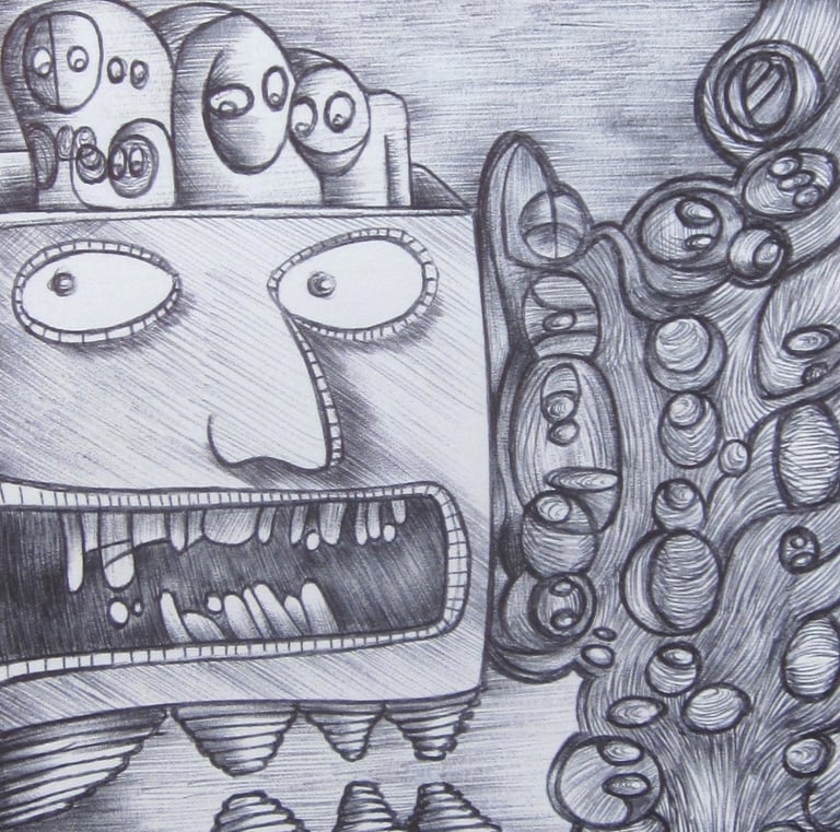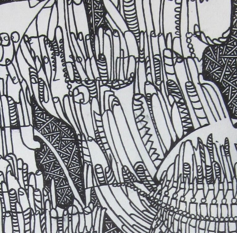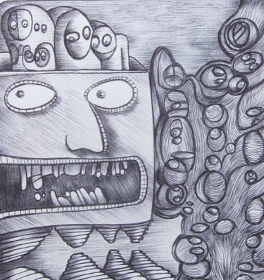 These are a few of my pen drawings on paper. I drew most of them while working at a call center during the pandemic, 2020-2023.