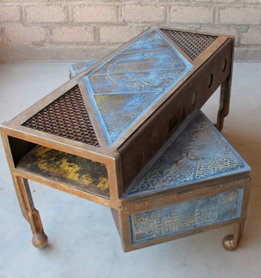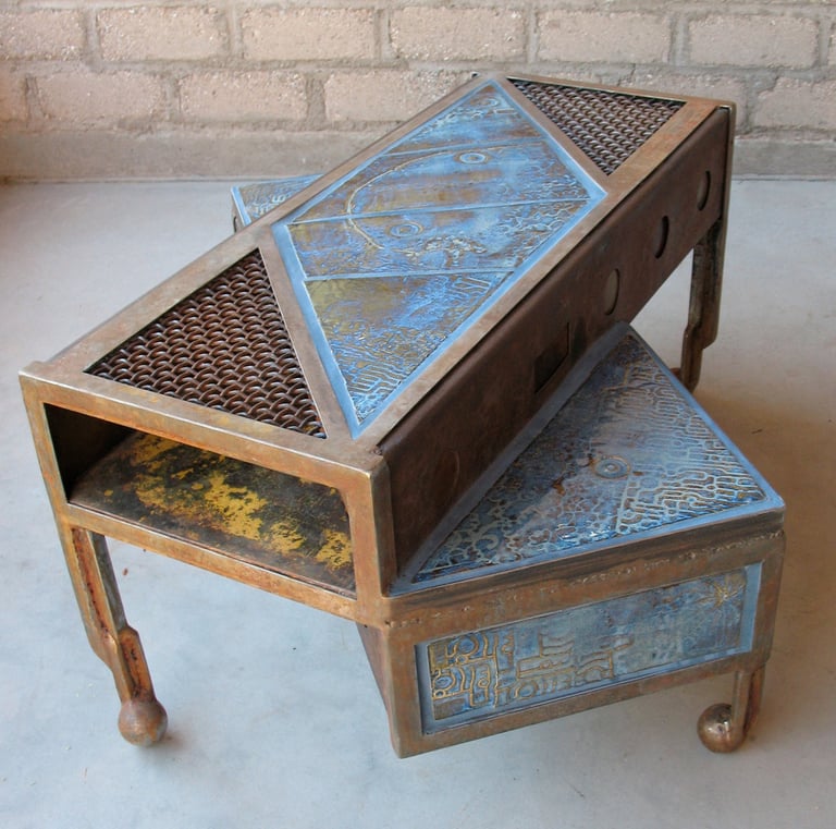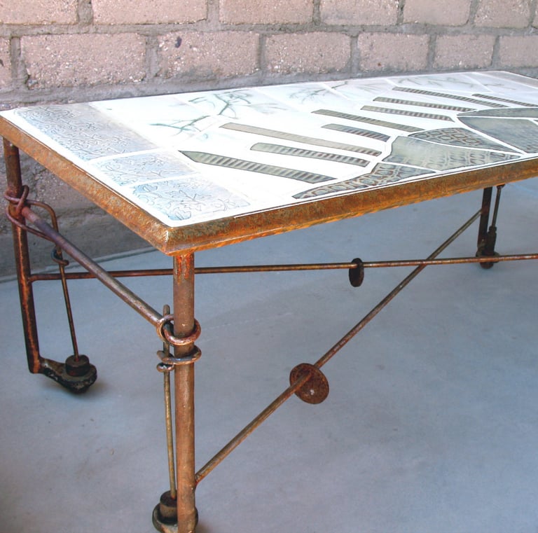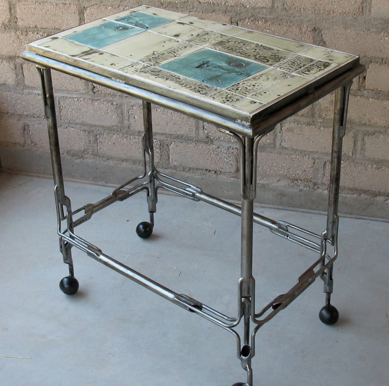 Between 2008 and 2011 I worked with a ceramic artist making steel and tile furniture. Here is a selection of some of the tables.